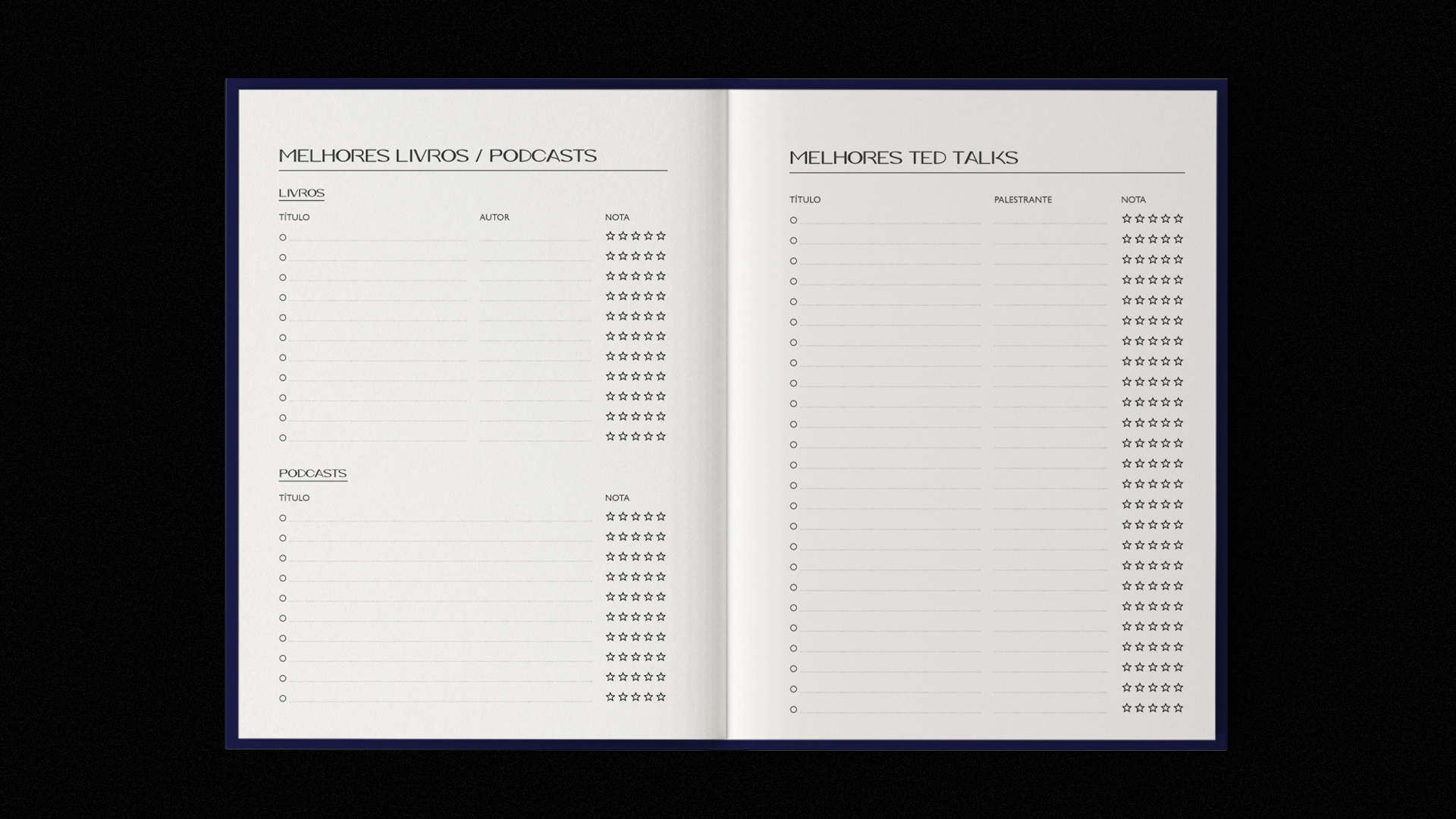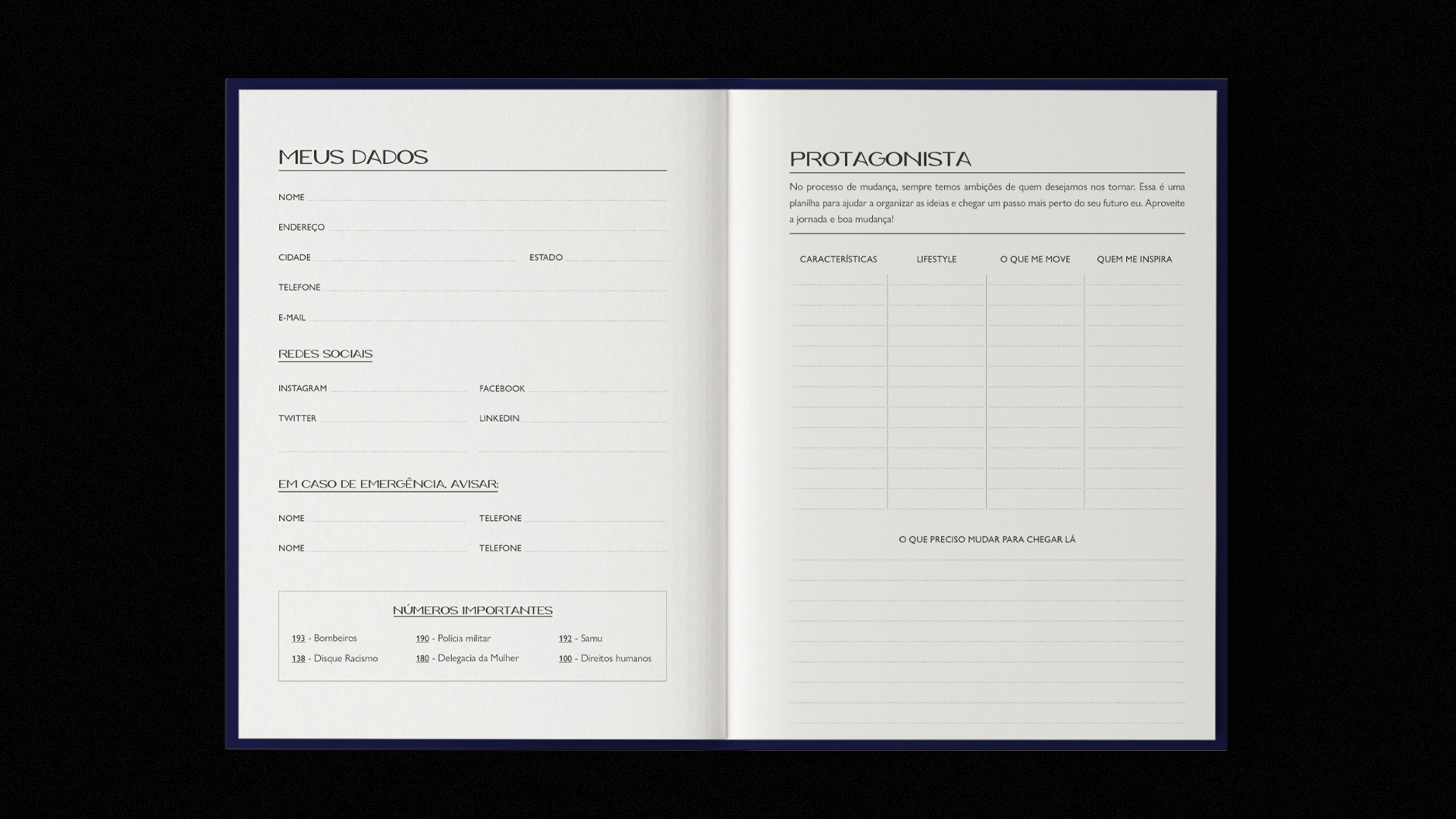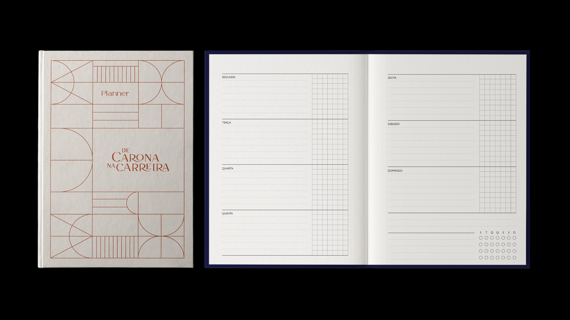 Projeto gráfico e diagramação de um planner desenvolvido para o podcast De Carona na Carreira (